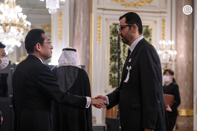زار سمو الشيخ خالد بن محمد بن زايد آل نهيان، عضو المجلس التنفيذي لإمارة أبوظبي رئيس مكتب أبوظبي التنفيذي، قصر الضيافة "أكاساكا" في العاصمة طوكيو لتقديم واجب العزاء إلى "آكي آبي"، أرملة رئيس الوزراء الياباني السابق "شينزو آبي"، بحضور "فوميو كيشيدا"، رئيس وزراء اليابان الحالي.