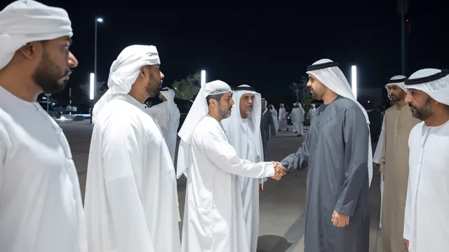 والفريق سمو الشيخ سيف بن زايد آل نهيان نائب رئيس مجلس الوزراء وزير الداخلية وسمو الشيخ حامد بن زايد آل نهيان وسمو الشيخ ذياب بن زايد آل نهيان وسمو الشيخ عبد الله بن زايد آل نهيان وزير الخارجية وسمو الشيخ عمر بن زايد آل نهيان نائب رئيس مجلس أمناء مؤسسة زايد بن سلطان آل نهيان للأعمال الخيرية والإنسانية وسمو الشيخ خالد بن زايد آل نهيان رئيس مجلس إدارة مؤسسة زايد العليا لأصحاب الهمم وسمو الشيخ ذياب بن محمد بن زايد آل نهيان نائب رئيس ديوان الرئاسة للشؤون التنموية وأسر الشهداء وسمو الشيخ حمدان بن محمد بن زايد آل نهيان ومعالي الشيخ نهيان بن مبارك آل نهيان وزير التسامح والتعايش ومعالي الشيخ محمد بن حمد بن طحنون آل نهيان مستشار الشؤون الخاصة في ديوان الرئاسة وعدد من الشيوخ وكبار المسؤولين.