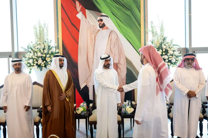 His Excellency Sheikh Khalifa bin Tahnoon bin Mohammed Al Nahyan, Chairman of the Abu Dhabi Crown Prince's Court, has attended a wedding reception hosted by Mohammed Mubarak bin Qarran Al Mansoori for the marriage of his son Hamad to the daughter of Rames Amer Al Ameri, and the marriage of his son Mubarak, to the daughter of Bathan Sultan bin Qarran Al Mansoori.