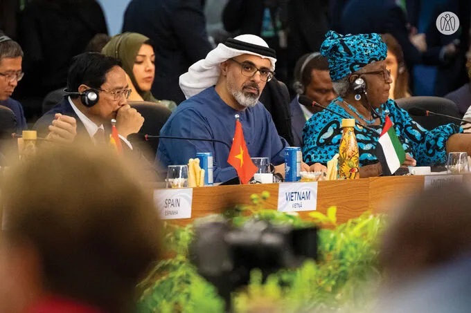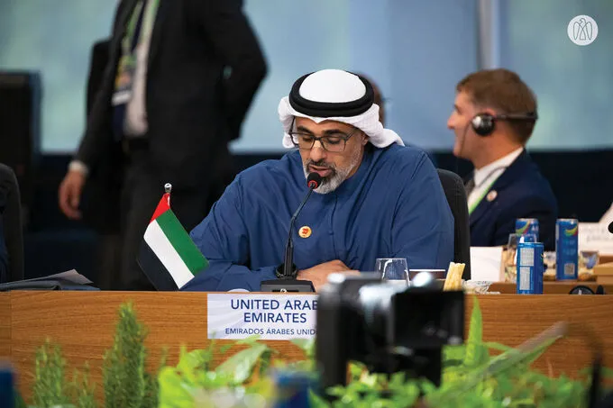 During the session, His Highness delivered the UAE’s address, conveying greetings from His Highness Sheikh Mohamed bin Zayed Al Nahyan, the UAE President, to the leaders and heads of state attending the summit, extending his wishes for a successful summit.