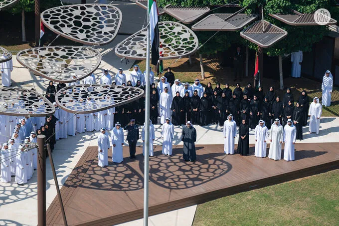 The flag-raising ceremony featured the UAE national anthem and was attended by His Excellency Sheikh Khalifa bin Tahnoun bin Mohammed Al Nahyan, Chairman of the Abu Dhabi Crown Prince Court; His Excellency Dr Mugheer Khamis Al Khaili, Chairman of the Department of Community Development; His Excellency Staff Major General Pilot Faris Khalaf Al Mazrouei, Commander-in-Chief of Abu Dhabi Police; His Excellency Mohamed Khalifa Al Mubarak, Chairman of the Department of Culture and Tourism; Her Excellency Sara Awadh Musallam, Chairperson of Abu Dhabi Department of Education and Knowledge; His Excellency Mohamed Ali Al Shorafa, Chairman of the Department of Municipalities and Transport; His Excellency Ahmed Jasim Al Zaabi, Chairman of the Abu Dhabi Department of Economic Development; His Excellency Mansoor Ibrahim Al Mansoori, Chairman of the Department of Health; His Excellency Ahmed Tamim Al Kuttab, Chairman of the Department of Government Enablement; His Excellency Saif Saeed Ghobash, Secretary General of the Abu Dhabi Executive Council; and a number of employees of Abu Dhabi Government.