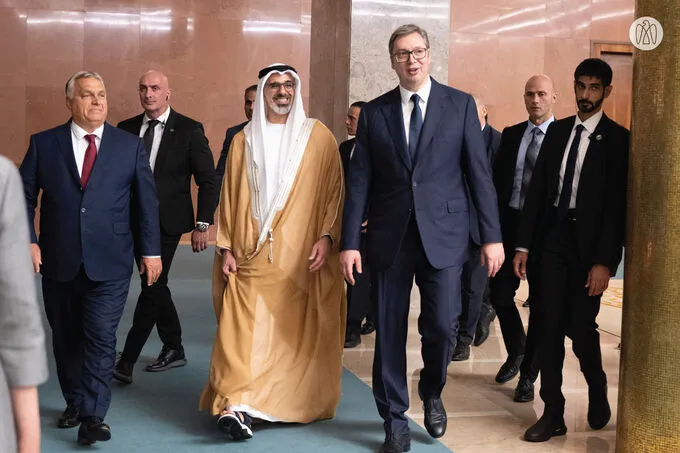 His Highness Sheikh Khaled bin Mohamed bin Zayed Al Nahyan, Crown Prince of Abu Dhabi, today met with Aleksandar Vučić, President of the Republic of Serbia, and Viktor Orbán, Prime Minister of Hungary, as part of His Highness’ working visit to the Republic of Serbia.