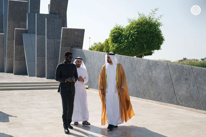 The meeting took place at Wahat Al Karama, where Senegal’s President was taken on a tour of the memorial, and placed flowers to express honour and respect to the UAE’s martyrs.