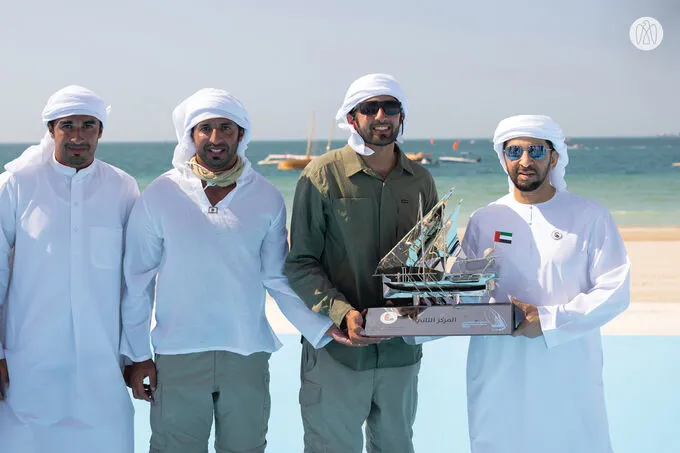His Highness Sheikh Hamdan bin Zayed Al Nahyan, Ruler’s Representative in Al Dhafra Region, has attended the 7th Historic Dalma 60ft dhow race, and awarded the Hasheem 199 boat first place alongside other winners organised by the Abu Dhabi Heritage Authority and Abu Dhabi Sailing Club at Dalma Island, Al Dhafra Region.